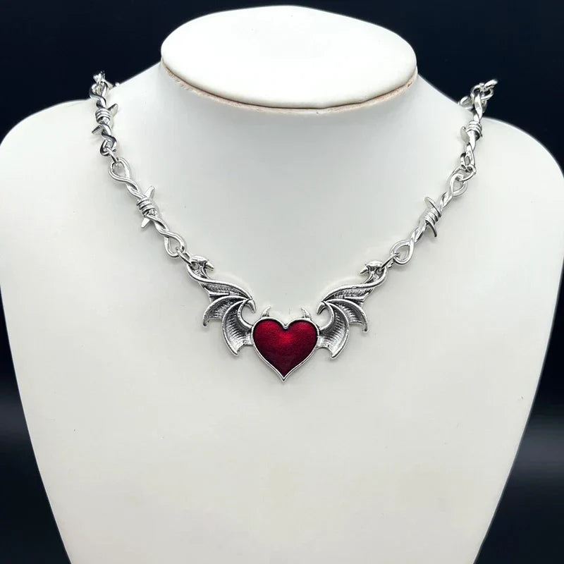 Aesthetic Goth Devil Heart Barbed Wire Choker Necklace – Punk Hip Hop Y2K Vampire Jewelry