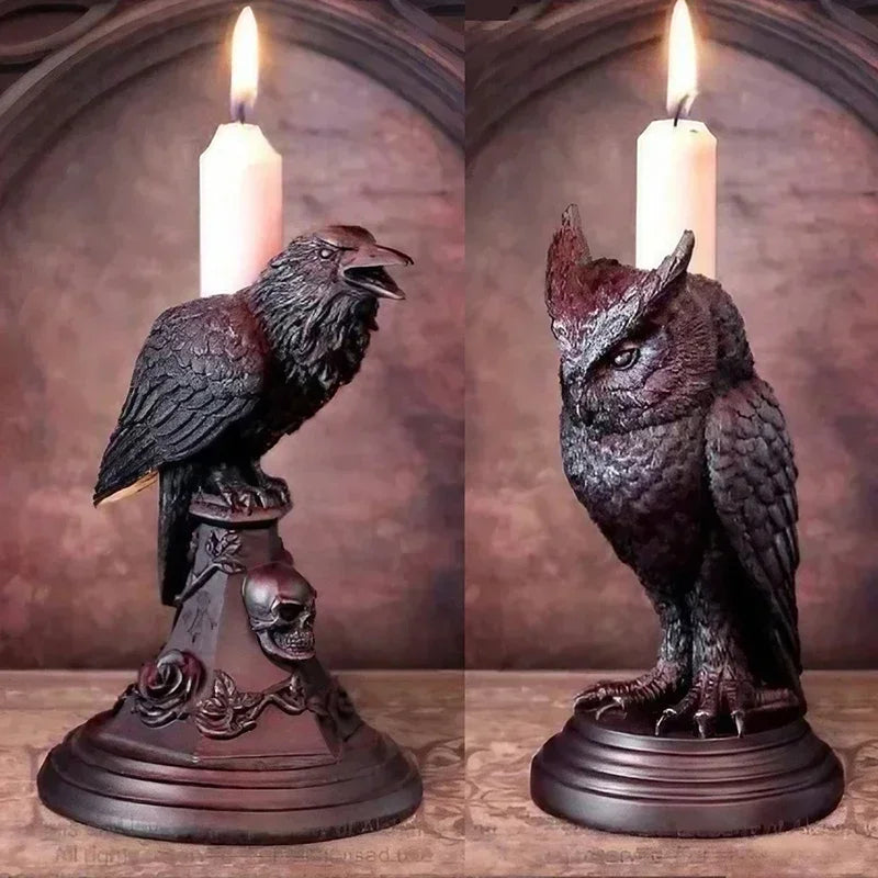 Gothic Crow Candle Holder – Retro Black Owl Candlestick Sculpture for Halloween & Home Décor